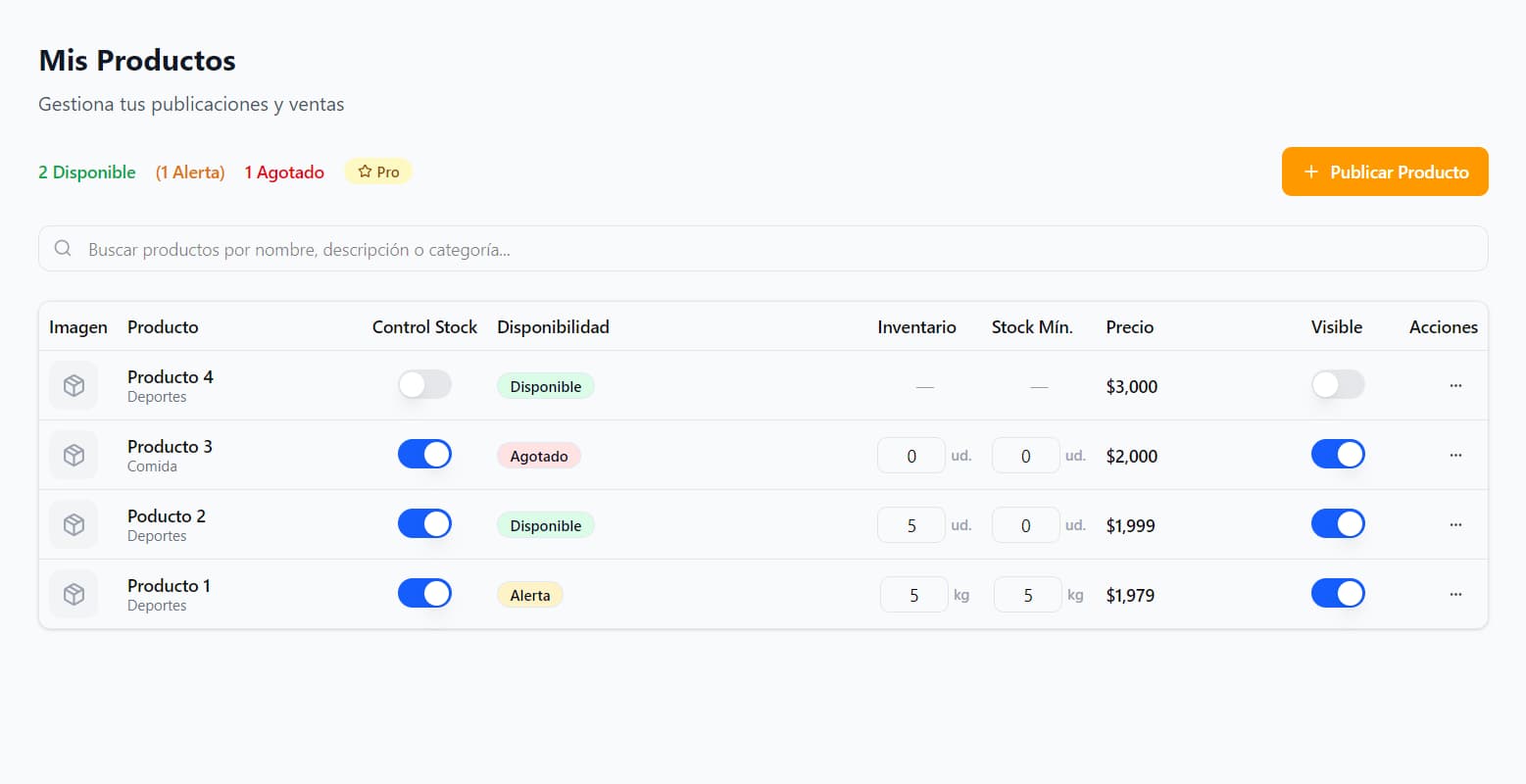 Publica tus productos fácilmente y márcalos como vendidos con un solo clic. Mantén tu inventario actualizado y ofrece siempre información precisa a tus clientes.